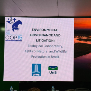 Foi uma honra participar da COP15 sobre Espécies Migratórias, realizada em Mato Grosso do Sul, onde pude apresentar os resultados de nossas pesquisas sobre a tutela jurídica do Pantanal e representar a UFMS.